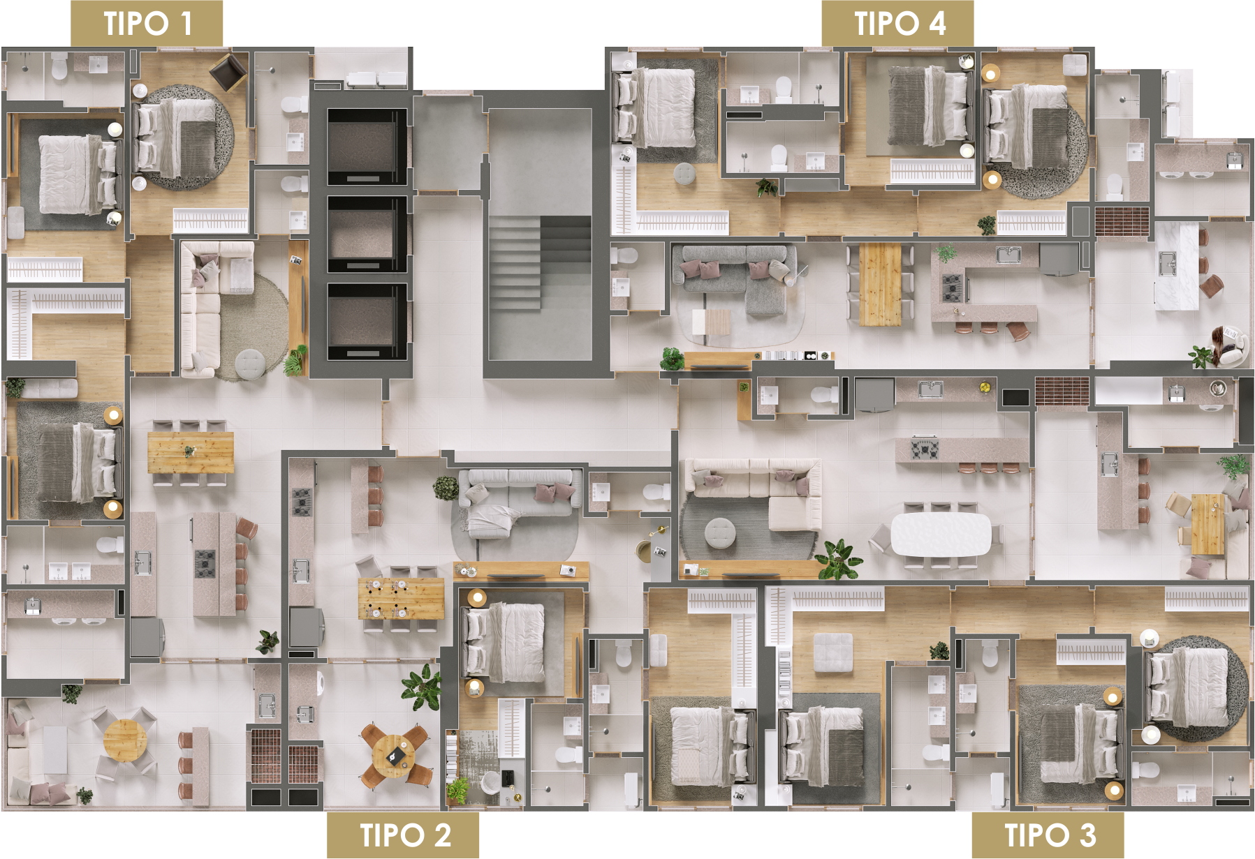 - Piso lâminados nas áreas íntimas